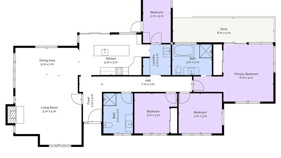 - Open plan living, kitchen and dining area